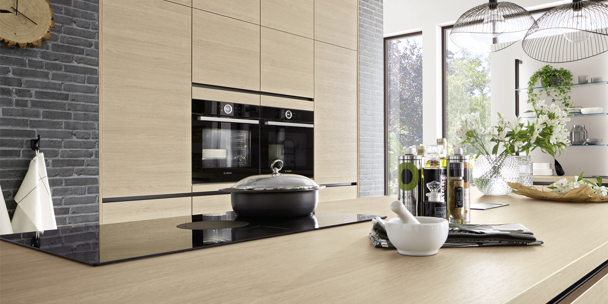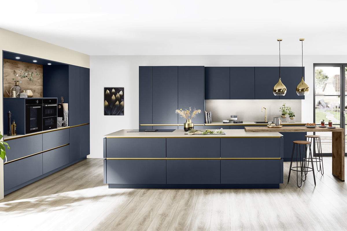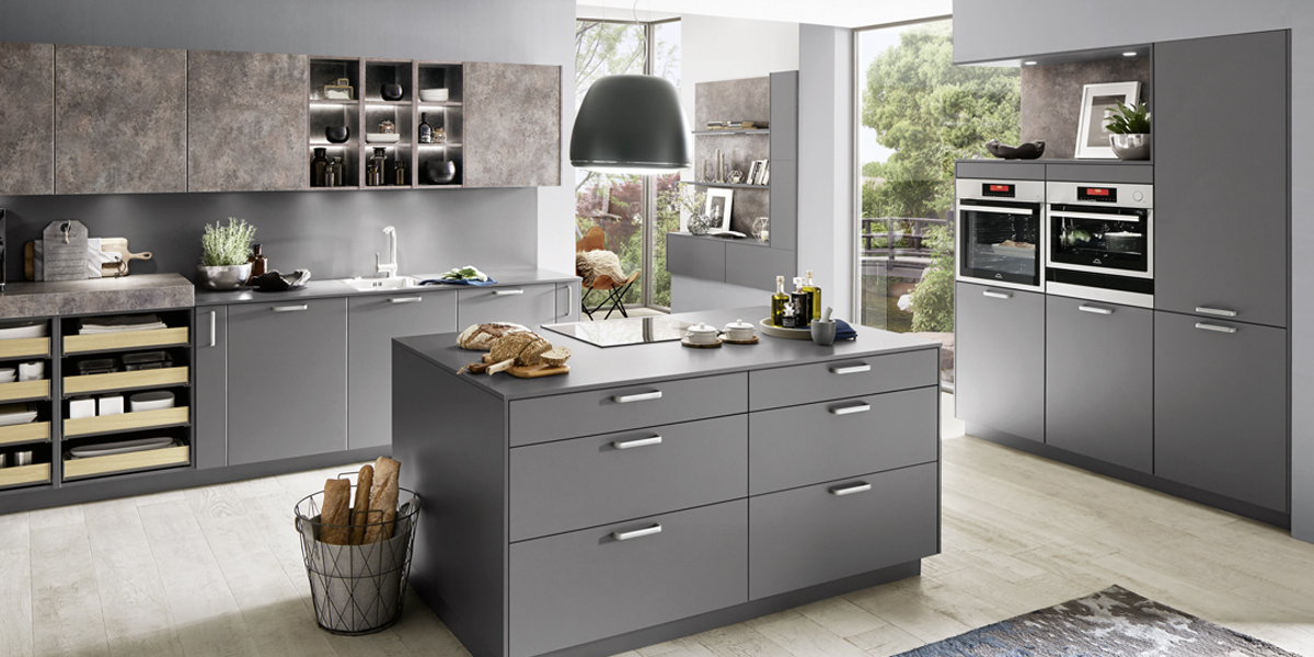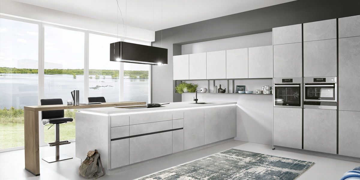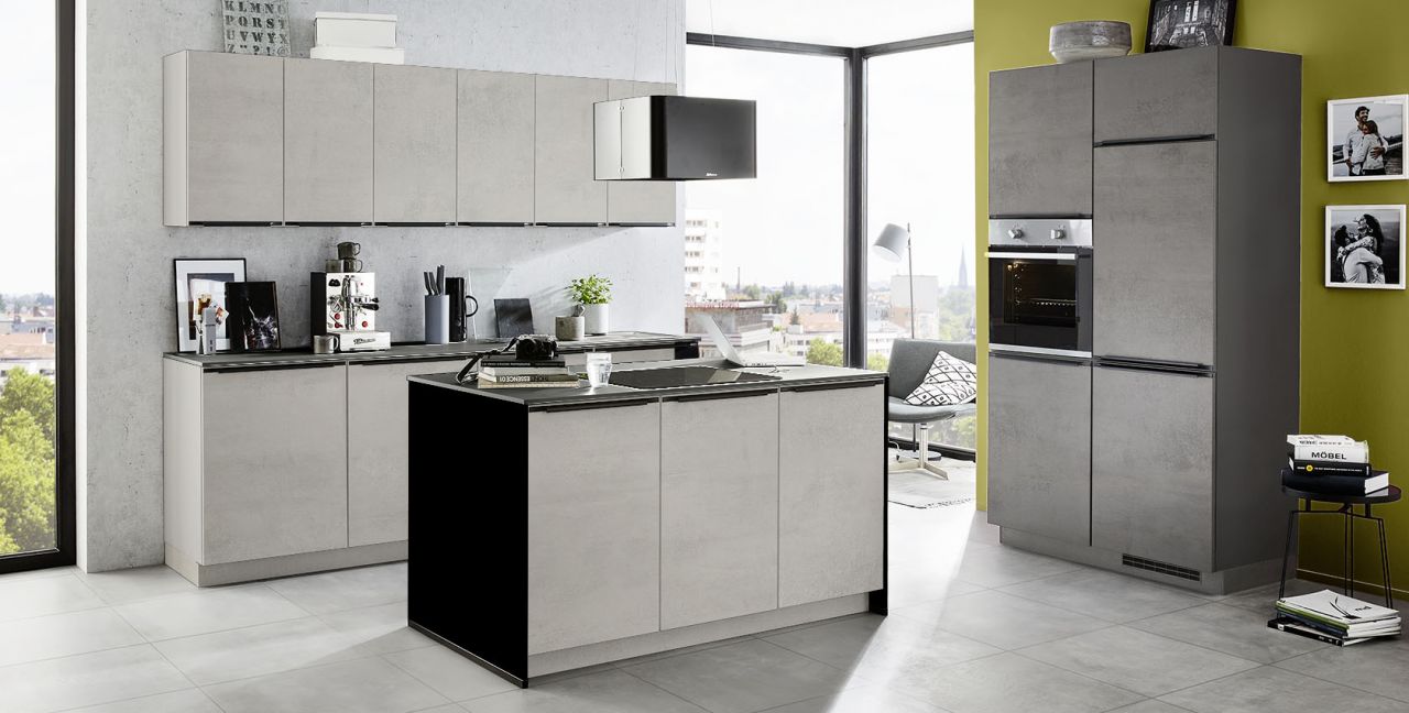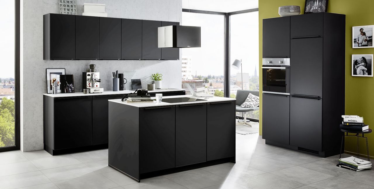 Inclusief RVS-inbouwoven Laurus LEB3 Energieklasse A, keramische kookplaat met inductie Laurus LIA60, RVS-eilandschouw Airforce F181BK Energieklasse B, koelkast Laurus LKS88F Energieklasse F, RVS-inbouwspoelbak Rodi Okio Line 85 Deep, XL-kasten.