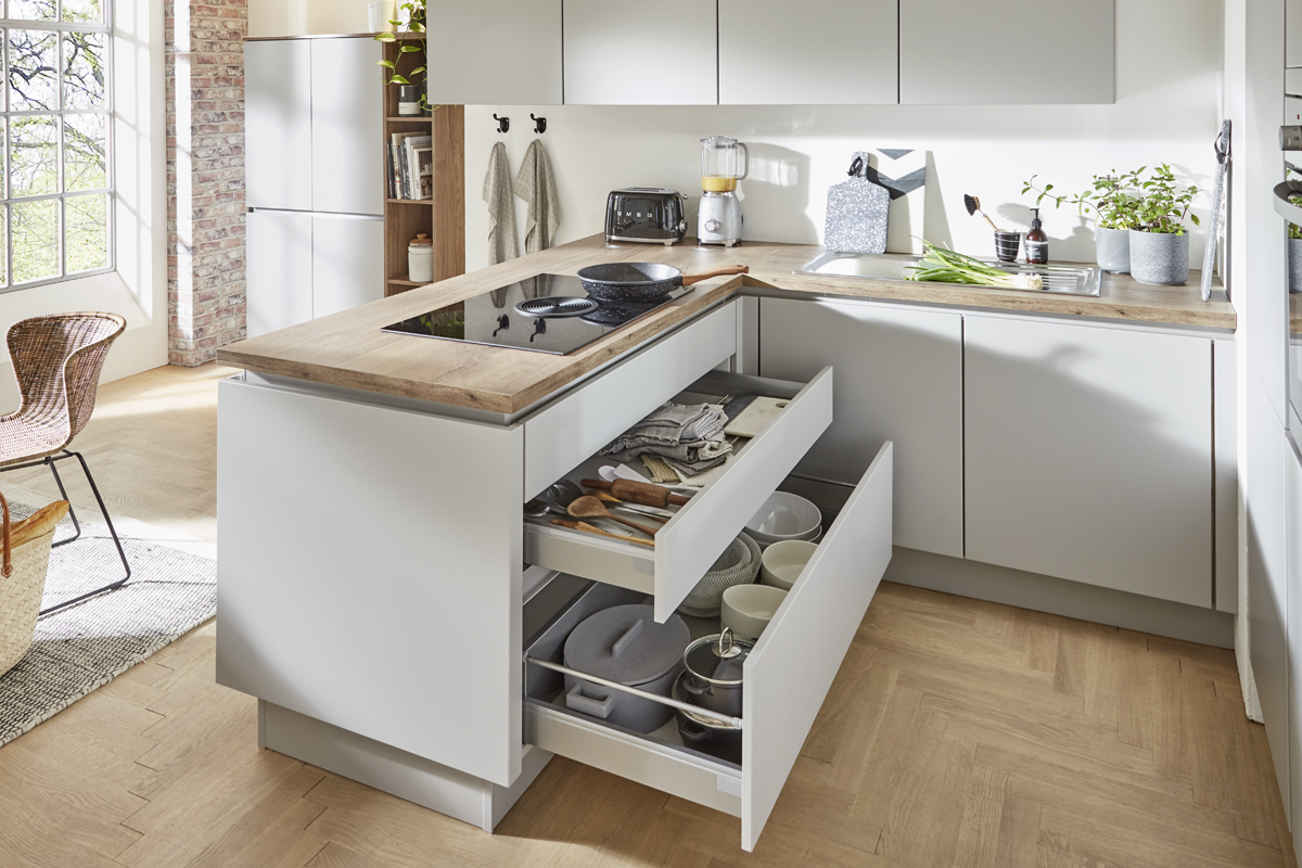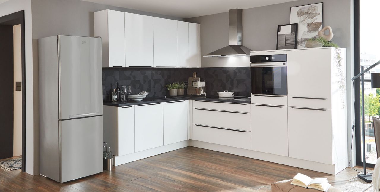 Inclusief inbouwoven zwart Bauknecht BIK5DH8FS2ES Energieklasse A+, keramische kookplaat met inductie Bauknecht BQ5160SAL, RVS-afzuigunit Elica MISSY BL90-D Energieklasse D, koel-vriescombinatie Beko RCSA366K40XBN Energieklasse E, inbouw-designspoelbak Elleci Logik 300, onderkast met uittrekinterieur.